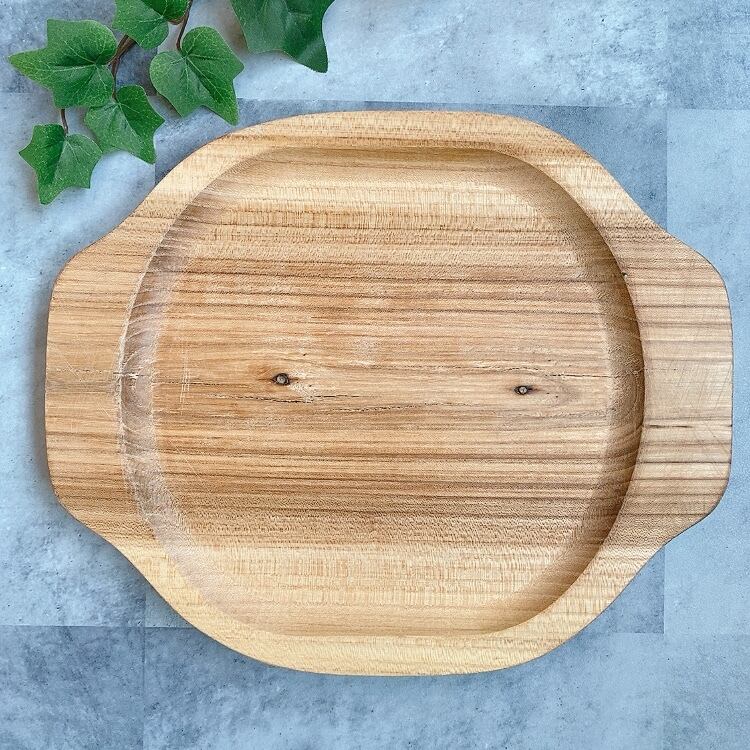 板をくり抜いて作ったお皿は、おつまみ、サラダ、お菓子など何にでもお使いになれます。